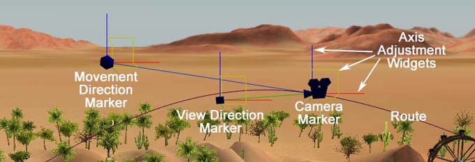 One other bit of terminology to get out of the way. When you start creating camera routes a number of markers will appear in the main game screen.